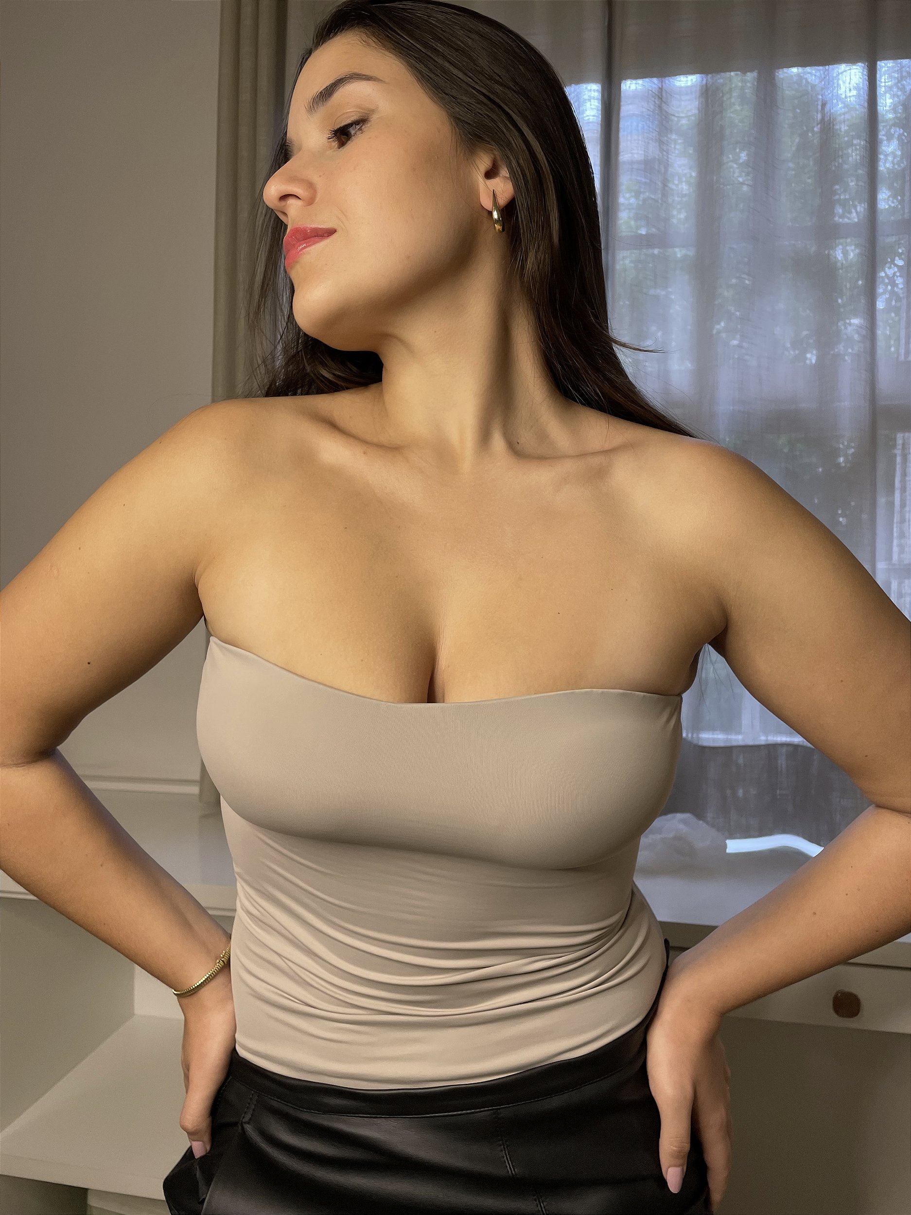 Colo livre e máximo conforto e segurança em uma blusa sem alças.